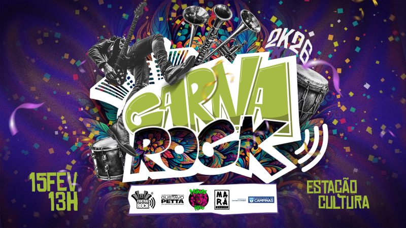 Enquanto o Brasil celebra os ritmos tradicionais de Carnaval, um evento em Campinas destaca o rock autoral em pleno feriadão da folia. O “CarnaRock” vai rolar no domingo, 15 de fevereiro de 2026, na Estação Cultura, a partir das 13h. A entrada é gratuita, mediante a doação de um litro de leite (caixinha) ou leite em pó, que será destinado à ONG Nós Por Eles, entidade que apoia famílias em situação de vulnerabilidade.