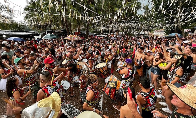 Com uma grande produção, que inclui alegorias, uma bateria contagiante e até comissão de frente, o bloco também envolve as crianças: os Curumins da Tribo levam muito ritmo para a praça do distrito, abrindo a festa, que também recebe blocos convidados.