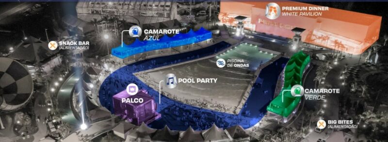 A Pool Party é ideal para quem deseja pular as sete ondinhas em uma das maiores piscinas de ondas do país, embalado por DJs animados e uma super queima de fogos. Com open bar das 22h às 3h30, os participantes poderão brindar o ano novo com cerveja puro malte, refrigerante e espumante.