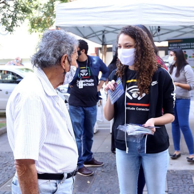 A ação envolve 12 bolsistas do Programa Juventude Conectada e ocorre na Praça Rui Barbosa, região central da cidade, pela manhã das 9h às 12h, e à tarde, das 13h às 16h. Os jovens do programa abordam as pessoas e dão as orientações sobre a necessidade do uso correto das máscaras.