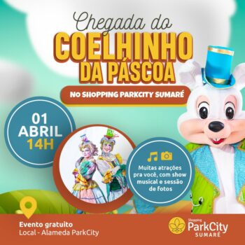O período de Páscoa no Shopping ParkCity Sumaré será repleto de atrações especiais para celebrar esta data tão tradicional. E para animar ainda mais a comemoração, uma figura especial visitará o empreendimento para alegrar as crianças e suas famílias: o Coelhinho da Páscoa.