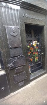 O cemitério da Recoleta é uma das principais atrações de Buenos Aires e chama a atenção principalmente pela imponência e história dos seus túmulos, onde estão enterrados boa parte da alta sociedade da Argentina. Entre seus mausoléus, o mais famosos e visitado sem dúvidas é o túmulo da Família Duarte, onde está enterrado Evita Perón. Perón é o sobrenome de casada de Eva.