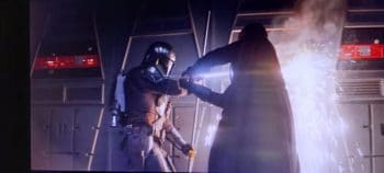 O Força do Raio Lazer abrindo uma brecha nas paredes e portas de uma das naves , mostrando a força do império-