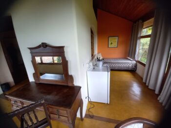 Para suas refeições, que aliás são saborosíssimas existem muitas opções vegetarianas em nossa cozinha assim como receitas internacionais com destaque para receitas européias, local de origem dos anfitriões. Promovemos, também, happy hours deliciosos para acompanhar o cair da tarde do alto das montanhas com drinks preparados na hora para você.