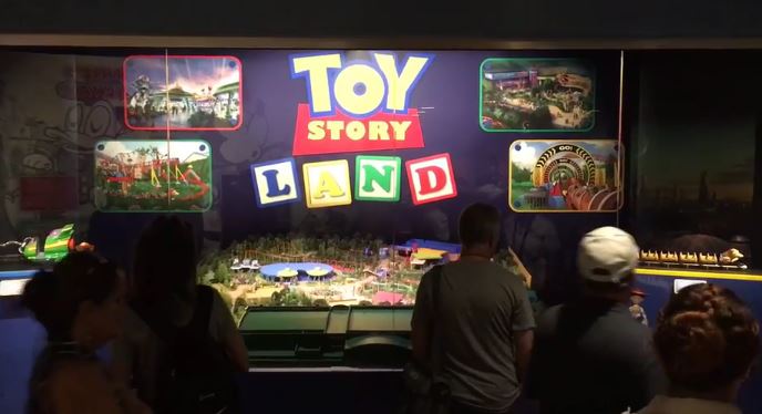 O modelo Miniaturized Toy Story Land dá uma ideia de que somo será a Montanha Russa ,
