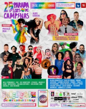 29/06 – 25ª Parada do Orgulho LGBT de Campinas – 10h00 concentração- Centro de Campinas.