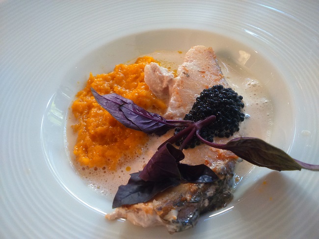 Robalo ao vapor, caviar, champanhe e purê de abóbora: refinamento