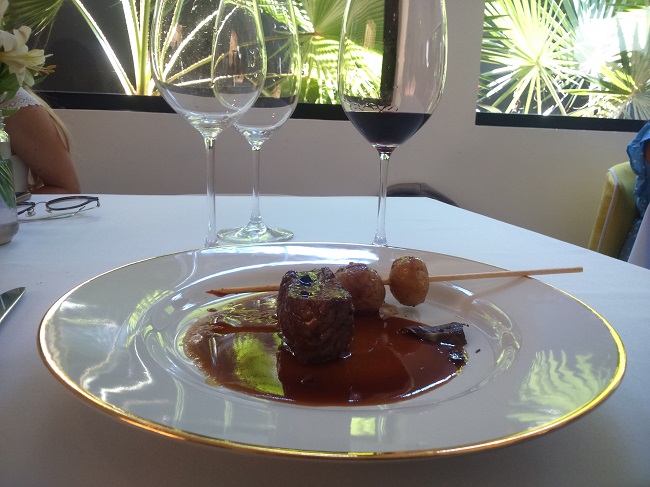 Como se vê, nem só de Malbec vivem nossos hermanos. Mas nem por isso dá para desprezar essa tinta que ainda é o maior cartão de visita do vizinho. O mendocino Cinco Tierras Malbec, com seus aromas de frutas vermelhas maduras, ervas frescas e especiarias, fez bonito ao lado do Filet de Boeuf Roti Pomme Sautée, uma receita de filé mignon com molho poivre, brochette de batata assada com molho de mostarda Dijon, o prato mais intenso da sequência.