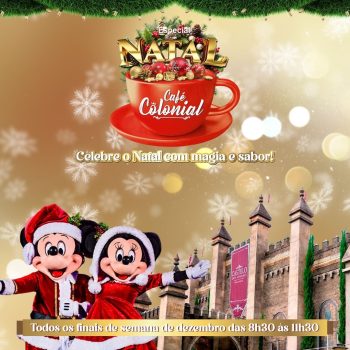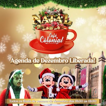 O tema do Café Colonial do mês de Dezembro é: Especial de Natal – Onde temos em todas as edições uma super Ilha Gourmet com pratos inspirados em uma experiência mágica com mais de 90 opções de comidas natalinas, personagens temáticos (como Mickey, Minnie e Papai Noel), música ao vivo, oficina de biscoitos, piquenique nos jardins e é pet friendly, com ingressos vendidos antecipadamente online e funcionamento aos finais de semana de Dezembro das 8h30 às