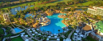 Sem ficar para trás, o aclamado Orlando World Center Marriott oferece ainda mais motivos para você fazer uma reserva depois da adição do seu parque aquático River Falls Water Park. Dê um mergulho em três toboáguas, navegue por um rio lento com entrada facilitada de 175 metros (575 pés) e divirta-se em um playground aquático.