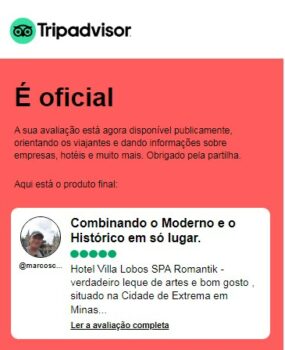 Nossa NOTA 05 ESTRELAS no TripAdvisor