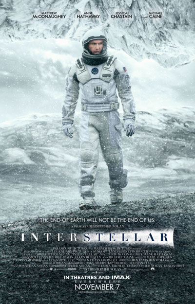 Em seu novo filme “Interestelar” (2014), Nolan sai do universo das conspirações, perda de memória, sonhos dentro dos sonhos e das personagens de HQ e vai, literalmente, ao espaço. Em um futuro próximo a terra estará devastada e será preciso que a humanidade deixe o planeta em busca de algum outro lugar para habitar e garantir a existência da raça humana. O ex-astronauta Cooper (Matthew McConaughey), agora fazendeiro, acaba se voluntariando para essa empreitada junto com outros cientistas.