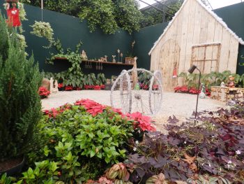 Poinsétias, begônias, kalanchoes, tuias, lírios e antúrios espalham elegância e charme pelos espaços, entre as decorações que primam por materiais sustentáveis, como o móbile de borboletas biodegradável, o presépio feito de EPS (isopor), produto 100% reaproveitável, ou o painel que sustenta 700 plantas, produzido em isopor para poder ser reutilizado em outras oportunidades. O conceito do “Jardins em Festa” focou na criatividade e na simplicidade, em detrimento do luxo, para lembrar o verdadeiro sentido do Natal. Os cinco primeiros ambientes foram destinados ao minissítio, outra atração do Natal de Holambra. As decorações dos espaços começam a partir do sexto ambiente:
