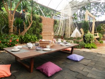 A proposta é alinhar o bem-estar da família a um espaço desenvolvido para o livre estar de crianças, adolescentes e pets. O espaço, inclusivo e muito acolhedor, oferece a possibilidade do estímulo de todos os sentidos – audição, visão, tato, olfato e paladar -, por meio do contato com a natureza e de brinquedos educativos sustentáveis. O ambiente traz uma mesa baixa de piquenique com louças nas cores azul e branco e uma cesta de Natal. A árvore iluminada, atrás do balanço, é formada por dezenas de filamentos amarrados para dar a forma de uma pirâmide. As plantas não são tóxicas, para a segurança das crianças e dos pets. A ideia é que toda a família desfrute de um ambiente cheio de texturas, cheiros e sabores.