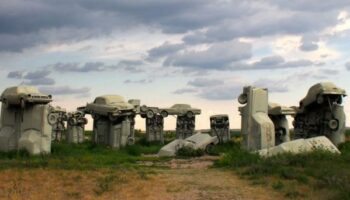 Uma estranha atração em Nebraska ocidental, o Carhenge é uma réplica do famoso Stonehenge britânico, feito de carros antigos
