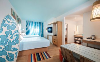 O Universal Orlando Resort divulgou as primeiras imagens do interior dos quartos de seu sétimo e mais novo hotel, o Universal’s Endless Summer Resort – Surfside Inn and Suites .. Desde a combinação de cores vibrantes até os tons quentes amadeirados, os hóspedes entrarão no estilo de vida de espírito livre da cultura do surfe no primeiro hotel de categoria Value do Universal Orlando.
