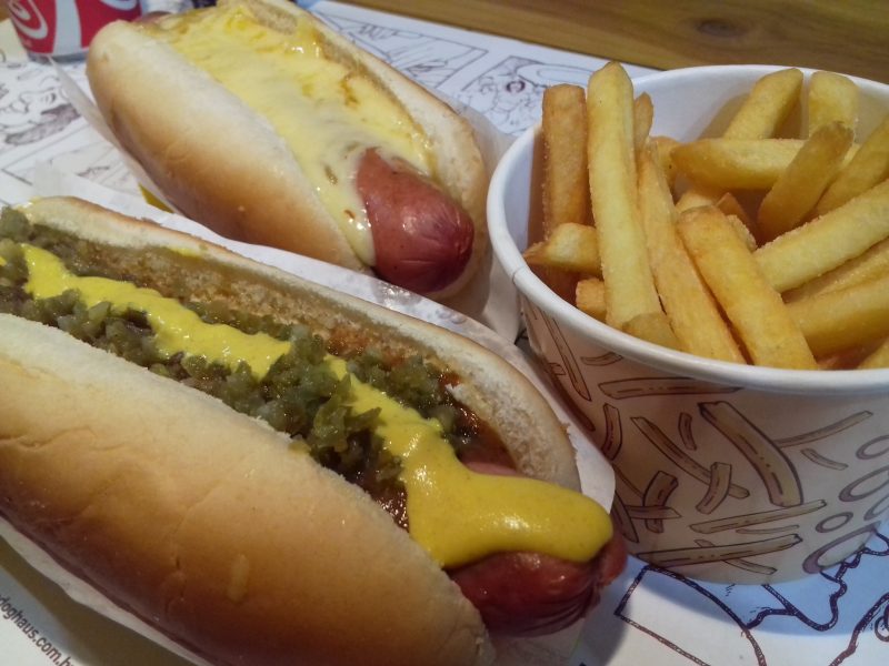 Encontrei meio por acaso e entrei em busca de algo para saciar a fome. O The Dog Haüs, na capital paulista, foi uma feliz descoberta! Adoro esses ambientes descolados e criativos e, logo de cara, deu para perceber que a salsicha é a estrela da casa. Tão adorada que, além de figurar em 99% do sucinto cardápio, o que considero algo bom, está presente em pinturas e desenhos pelo recinto, que é pequeno e acolhedor.
