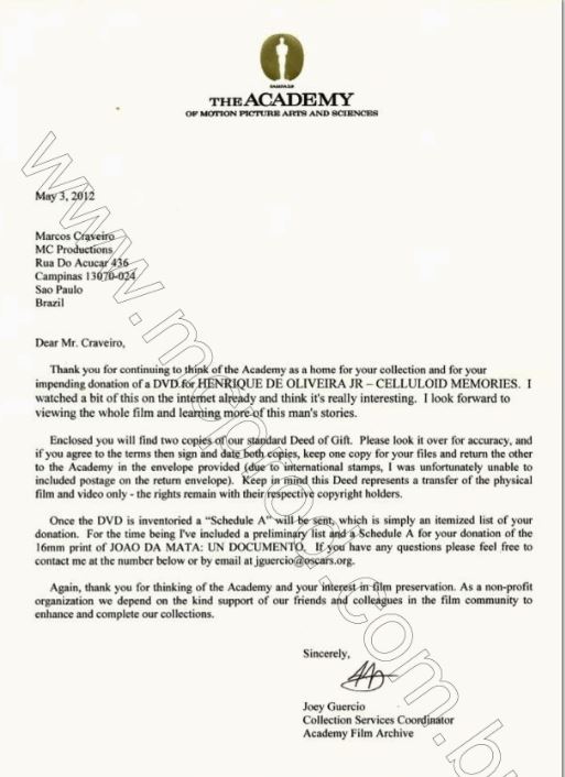E ainda tenho 06 filmes na Coleção da Academia e em 1984 , participei com o melhor curta metragem com JOÃO DA MATA UM DOCUMENTO no Oscars da Academia.(Entre eles , Henrique de Oliveira Junior de 2010 ).