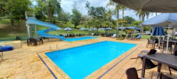 E as crianças irem tomar um bom banho de piscina e brincar no parquinho de diversões.