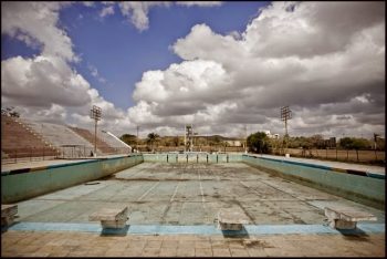 – De novo, a velha piscina cheia. Antes fosse de gente.