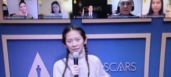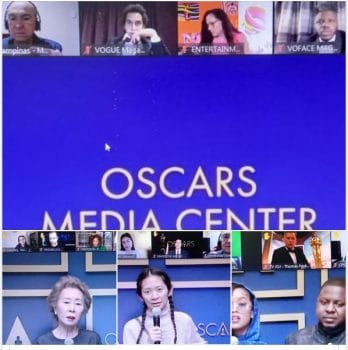 Aqui entrevistando a Chloé Zhao – no útimo domingo na Coletiva do OSCARS 2021!