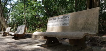 Ao chegar ao fim do meu exercício matinal, eu me divirto prestando atenção às propagandas nos bancos antigos do parque. Lojas, bares, restaurantes, indústrias. A maior parte é pretérito e só faz rir quem já viveu épocas passadas. Foi num desses ciclos que parei, descansei antes de retornar à minha casa, perdida em um período que passou em um piscar de olhos. Prova de como o tempo é implacável. Nas letras apagadas pelos anos, podemos ler: “Timoteo Barreiro – máquinas de escrever, somar e calcular.” Sigo minha trajetória rindo para não chorar.