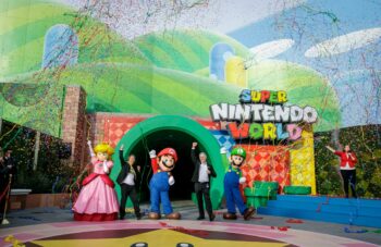 Dentro da vibração das cores e engenhosidade arquitetônica, o terreno apresenta o inovador passeio “Mario Kart™: Bowser’s Challenge”, bem como muitas atividades interativas para envolver toda a família no cativante Mushroom Kingdom. Juntamente com jantares temáticos no Toadstool Cafe™ e compras na loja de varejo 1-UP Factory™, o SUPER NINTENDO WORLD é uma adição inspiradora e revolucionária ao mundialmente famoso parque temático.