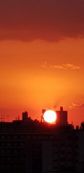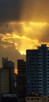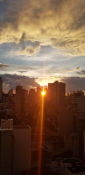 Eu perdi as contas de quantos pores de sol fotografei da sacada do prédio onde moro. Muitas vezes eu queria apenas contemplá-lo, mas como não guardar os registros dessa eterna dança de sol e lua? Eu passei a registrar cada pôr de sol quando me vi isolada em meu apartamento. O isolamento começou antes do isolamento da pandemia. Uma solidão se instalou em mim até que, quando me dei conta, se transformou em solitude. Seguiu uma ordem essa mudança e variou conforme os dias de sol, de tempestades, encobertos por nuvens escuras, dias antecipados de noite; dias explodindo de despedida amarelo-laranja. Que pintura!