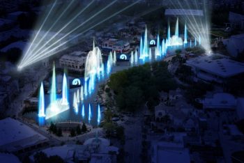 Estamos também construindo um ponto de observação permanente para o espetáculo na área do Central Park no Universal Studios, de onde você poderá assistir a lagoa ganhar vida.