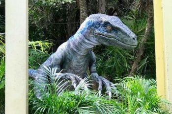 Blue é a mais nova criatura no “Raptor Encounter”, que permite que os convidados encarem de perto os carnívoros espertos. Os velociraptors são caçadores inteligentes e extraordinários, e os convidados do parque temático são aconselhados a se aproximar deles com cautela.
