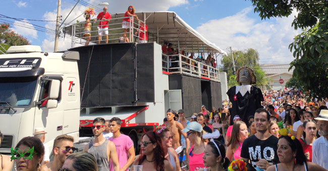 Ainda com um público reduzido e se escondendo entre as sombras disponíveis na praça, o desfile teve uma abertura com direito à homenagem do bloco ao maestro campineiro Antonio Carlos Gomes, no aniversário de 150 da ópera “O Guarani”. A banda tocou os acordes iniciais da ópera, o que deu o início à festa, e o bloco ainda trouxe um bonecão de Carlos Gomes. O tributo comemorou a apresentação realizada pelo maestro no teatro Alla Scalla, em Milão, conquistando o primeiro sucesso da música brasileira no cenário internacional.